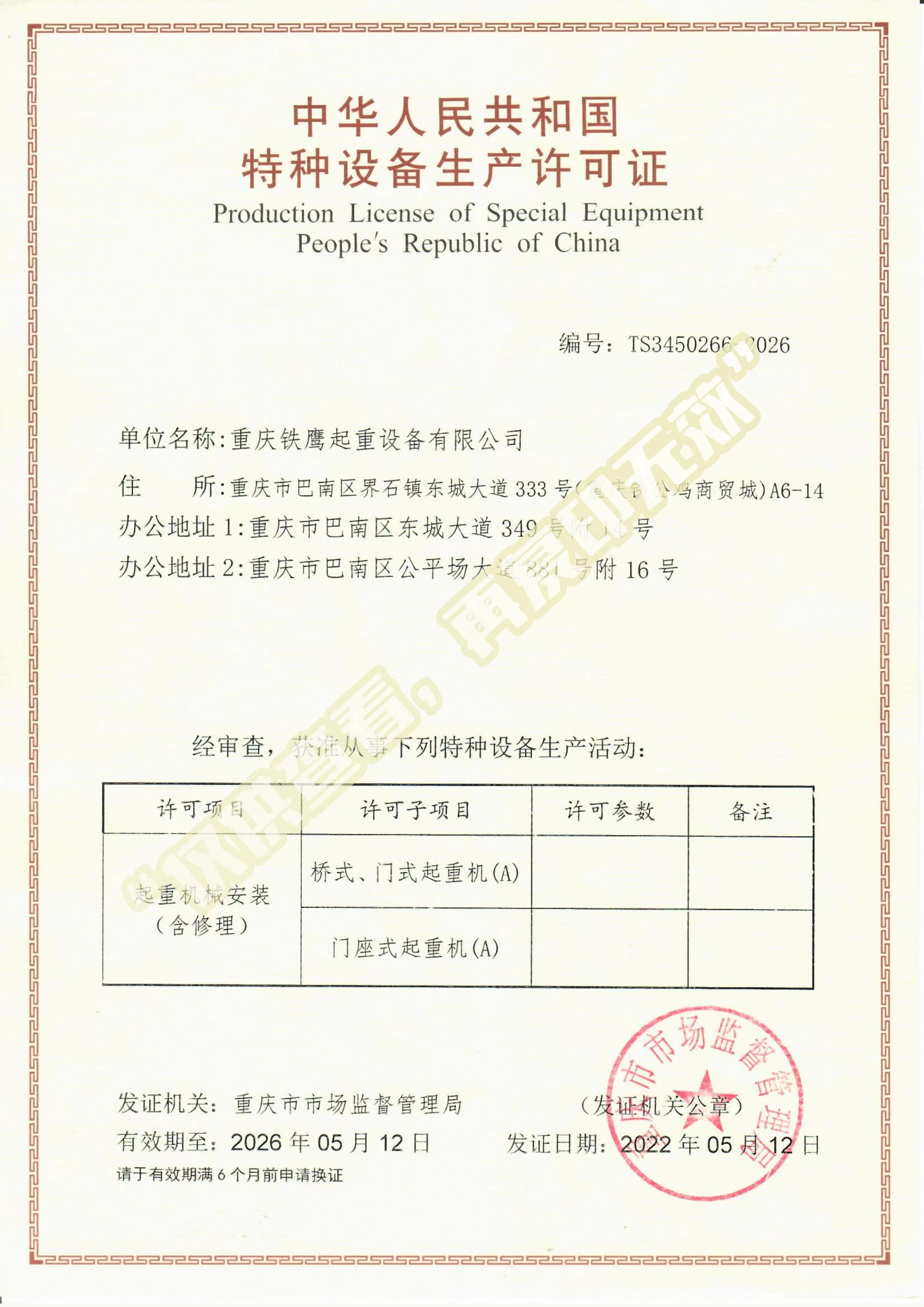 重慶鐵鷹起重設備有限公司成立多年,是中國重型機械工業協會會員單位,是國內外信譽卓著、規模較大的起重機專業制造廠家之一。主要從事雙梁起重機、門式起重機、單梁起重機、抓斗、軟起動錐形電機、電動葫蘆等系列起重設備的制造、銷售和安裝。 公司在借鑒、學習國內外先進管理方法、經營理念的基礎上,建立了“以人為本”的現代化科學規范的管理機制...